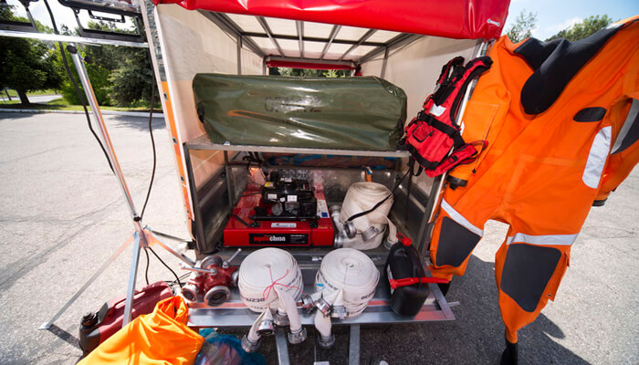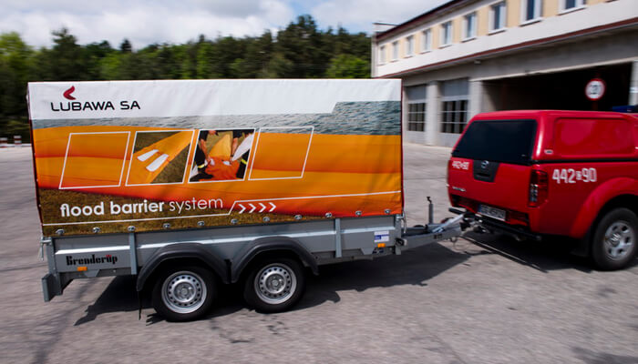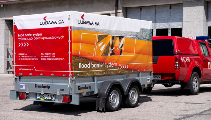 Trailer for flood rescue is intended to carry out flood action with the equipment contained in it: flood barriers filled with water FB3L, manufactured by LUBAWA S.A. On the trailer there are all the tools and equipment necessary to position barriers in different area and weather conditions. A trailer can be ordered in several versions – in different capacities and sizes, to meet the customer’s needs, as well as to the vehicle, by which is to be transported.