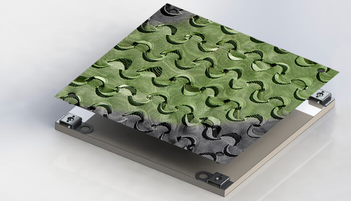 Building on our potential, experience and expertise in the field of ballistic protection and camouflage, we have created the world’s first integrated vehicle protection system against damage. The system consists of two layers and combines the characteristics for ballistic protection (bottom layer of the composite) and masking (top layer). With this connection, the object is protected against projectiles and splinter generated during an explosion and the top vehicle masking layer, which may have come in any colour and design, masks an object in the optical and near-infrared range and protects against heat and radar detection.