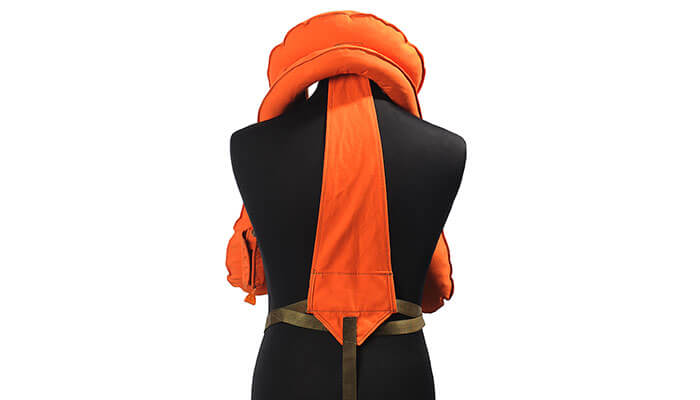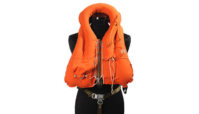 Pneumatic lifejacket with automatic filling system deploying when immersed in water to a depth of 10 cm. Another advantage is the possibility of inflation by mouth. Temperature range -30ºC +50ºC. Vest is able to maintain user on surface of water by min. 6 hours.