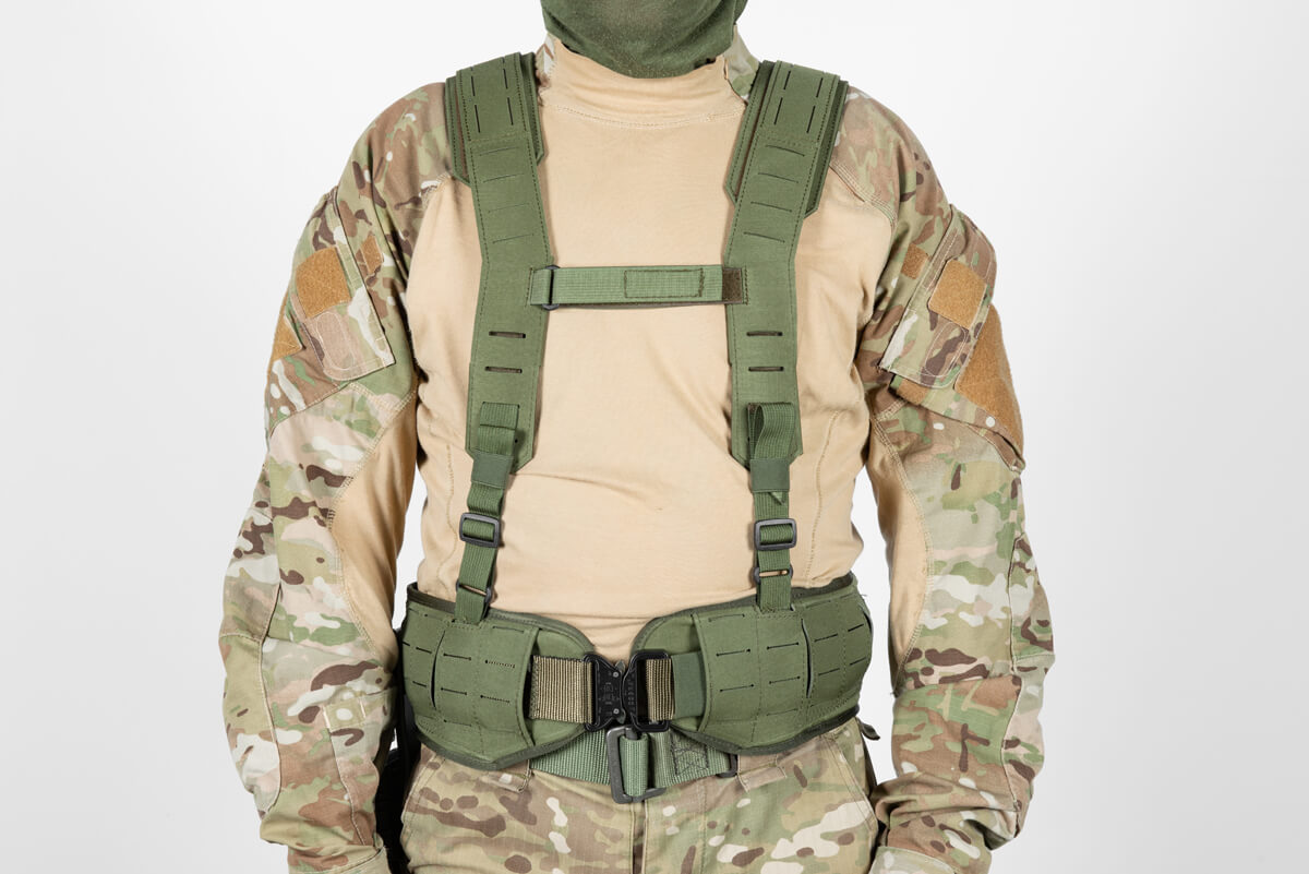 Waist Belt with Braces – This setup is designed for high mobility tasks, which require the user to carry additional equipment.