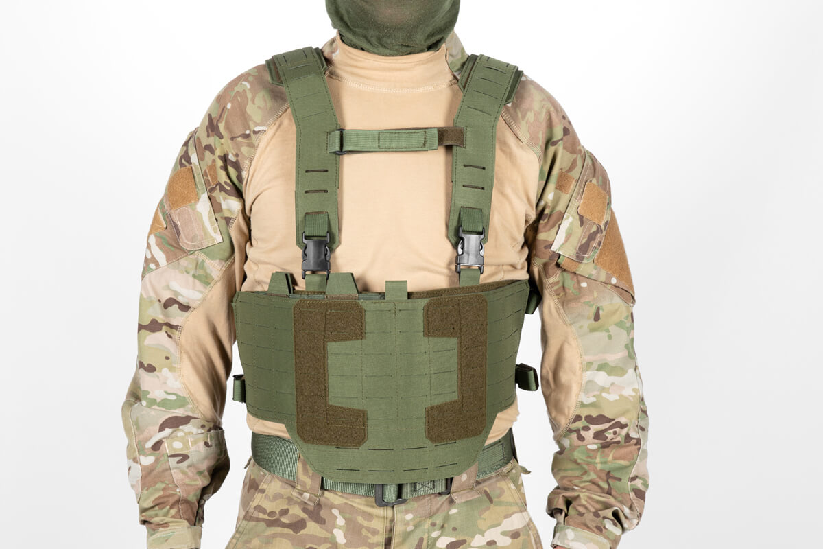 Chest Rig with Braces – This setup is designed for high mobility tasks, which require the user to carry additional equipment.