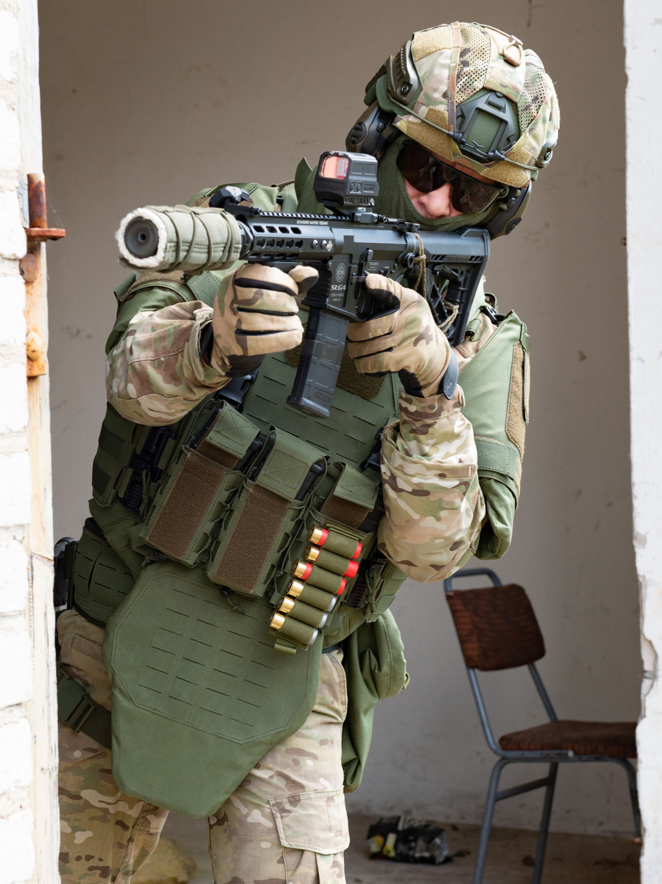 Full Assault Setup – This configuration is designed for operations requiring the maximum ballistic protection.
