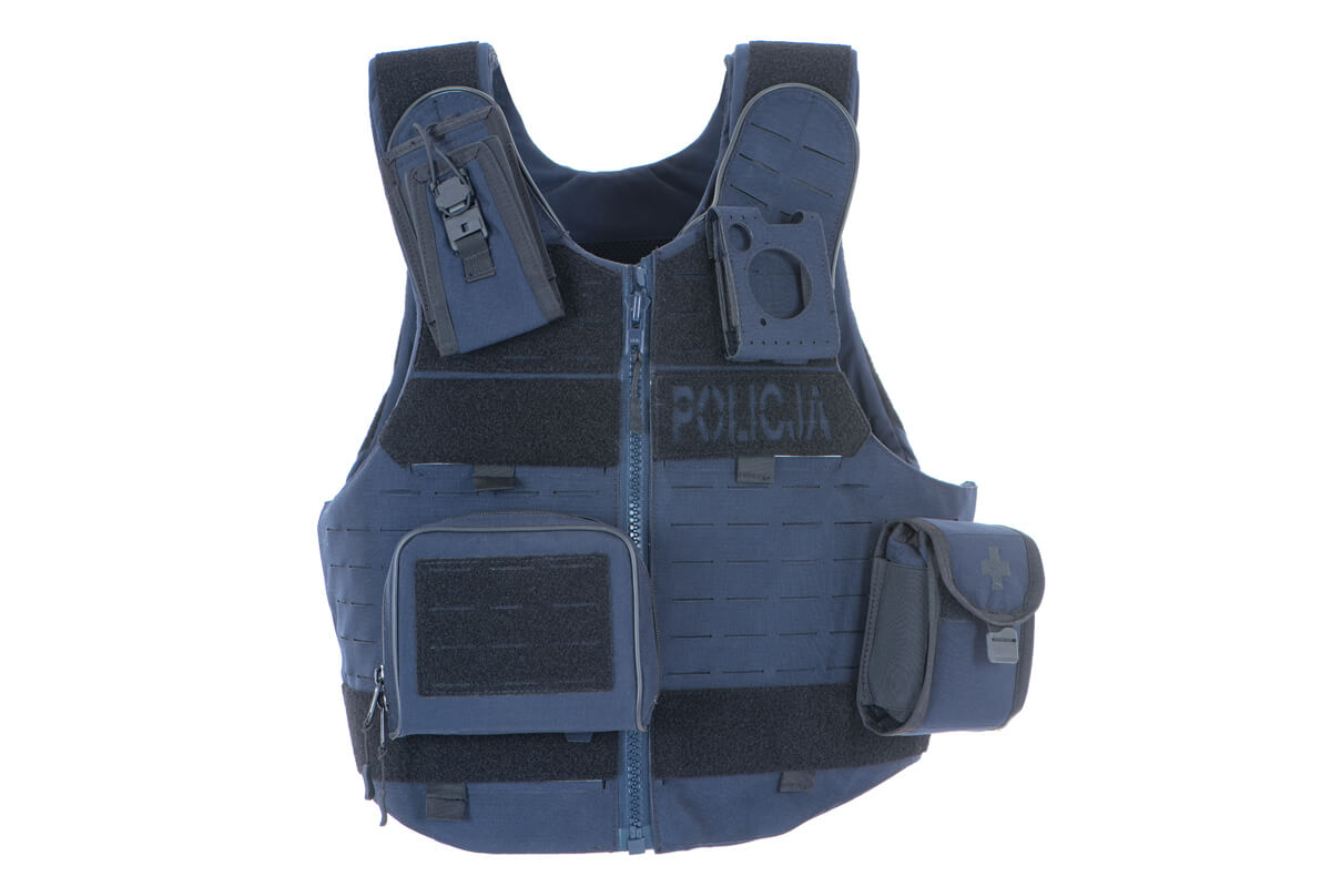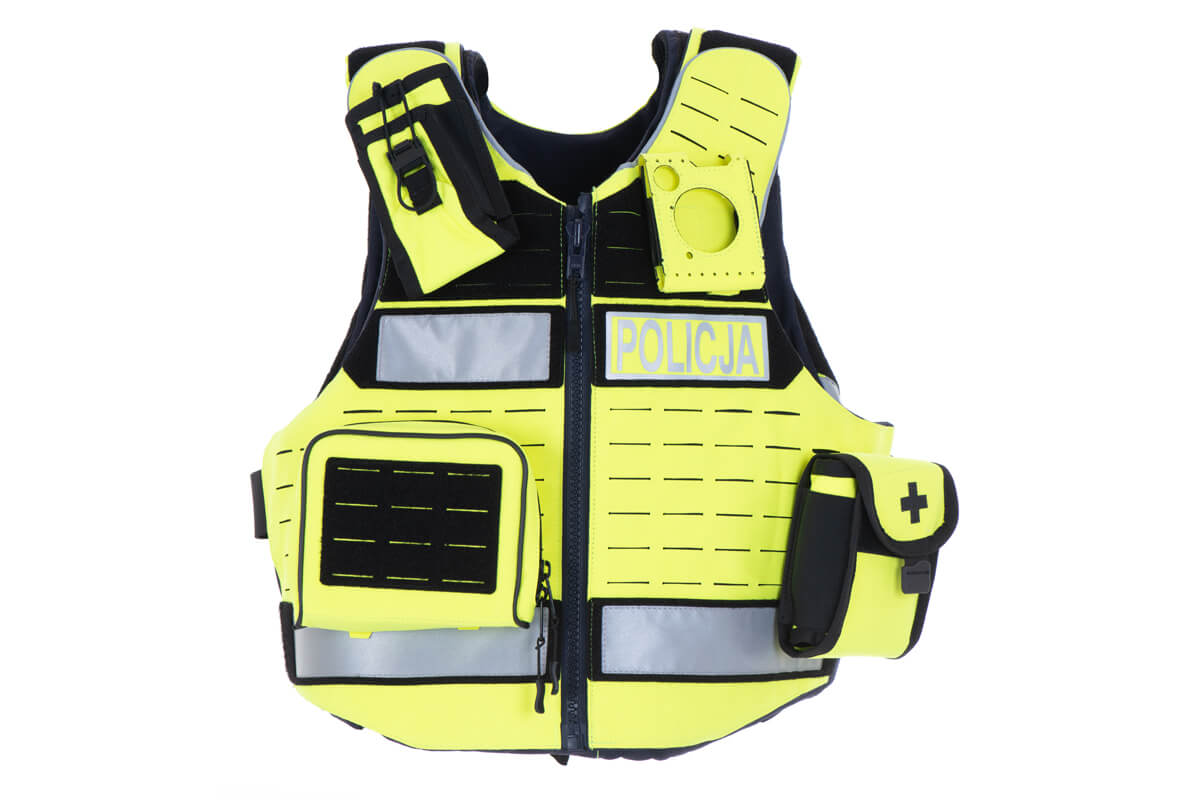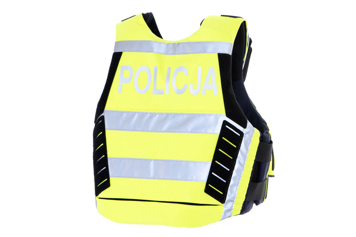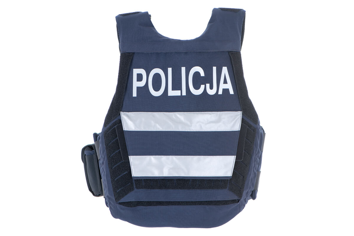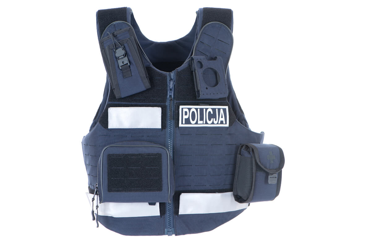 4-function outer vestis dedicated in particular to Police officers and other armed uniformed formations. Sheathing of the vest is made of flame-retardant polyamide fabric and polyamide laminate –flame-retardant.