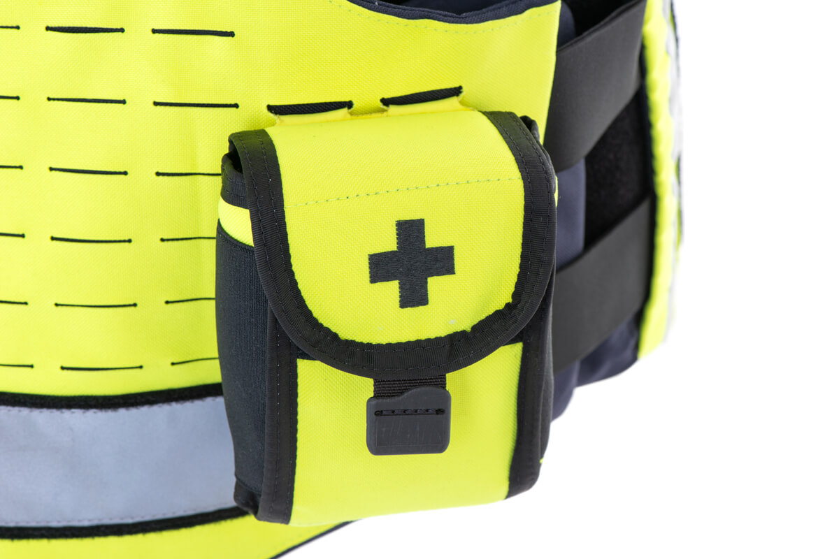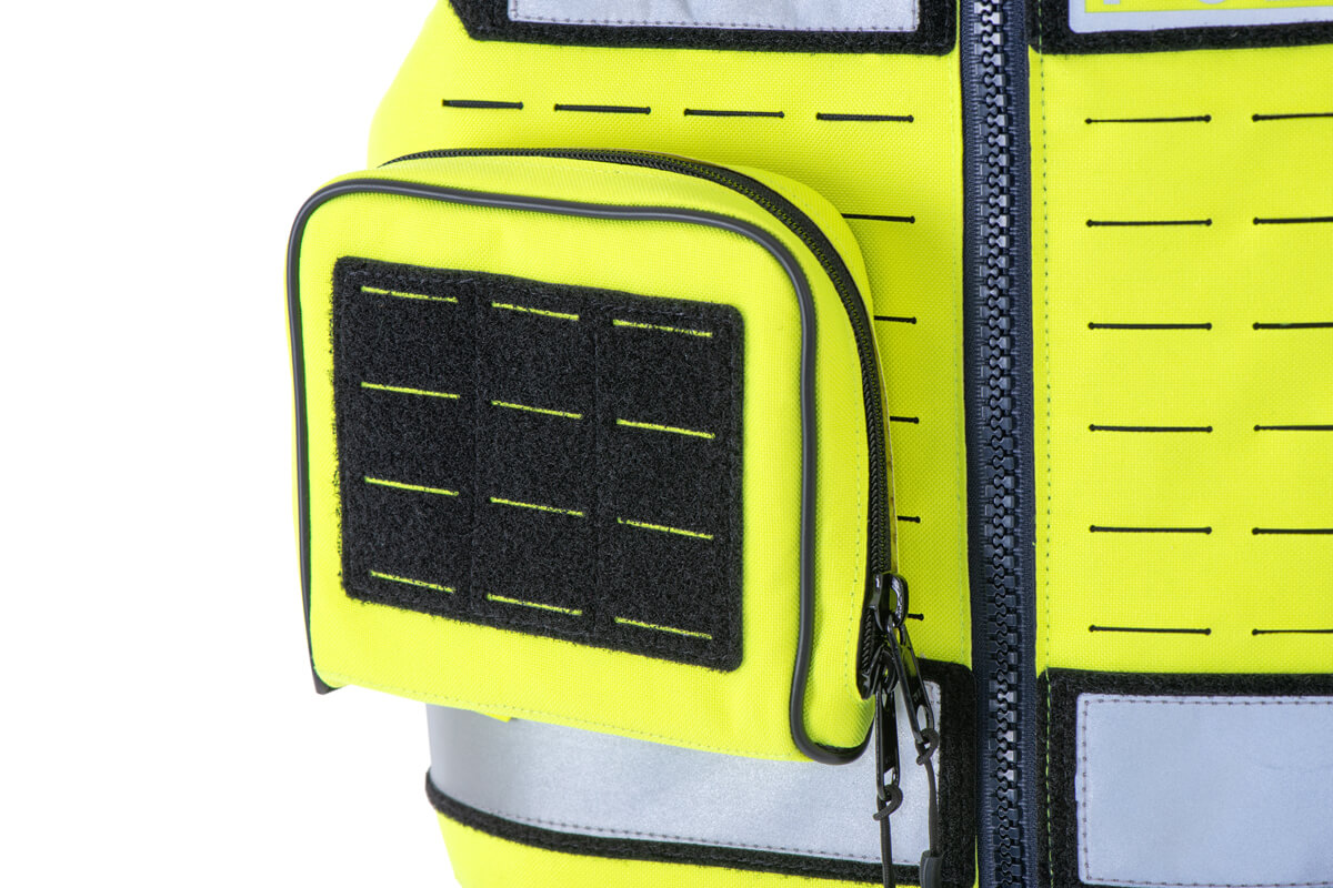 - Modularity of the kit –the front part of the vest is covered with laser-cut holes that allow for assembly (in the MOLLE/PALS system) of pouches and functional pockets in a location chosen by the user.
