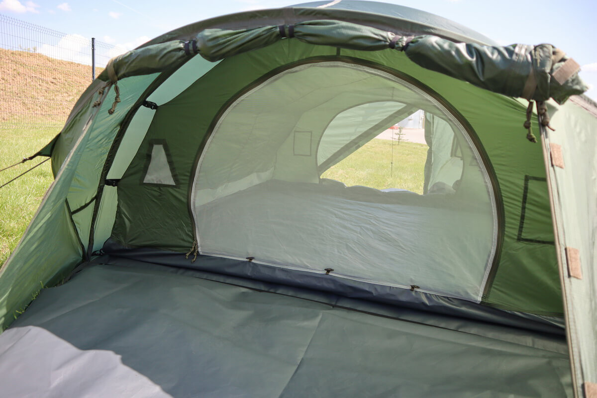 It might be assembled as whole set of outer tent and inner tent, as well as the outer tent only. Extremely lightweight construction and quick assembling / dissembling ensures usefulness during daily service. The tent is prepared for use in different terrain and climate conditions, also with large air humidity and in large sun exposure (external temperature range from -30°C to +40°C).
