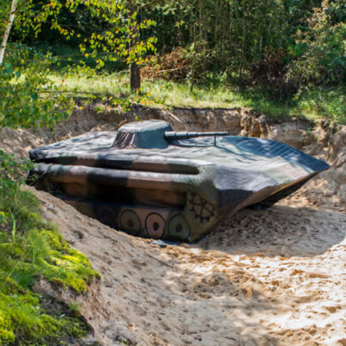 The inflatable mockup is designed to simulate individual objects or groups of equipment in mixed (mockups and real equipment) or simulated (only mockups) conditions. Inflatable mockups simulate the presence of the equipment in a wide spectrum of electromagnetic radiation used in the reconnaissance, i.e. in the visible, thermal and radiolocation range.