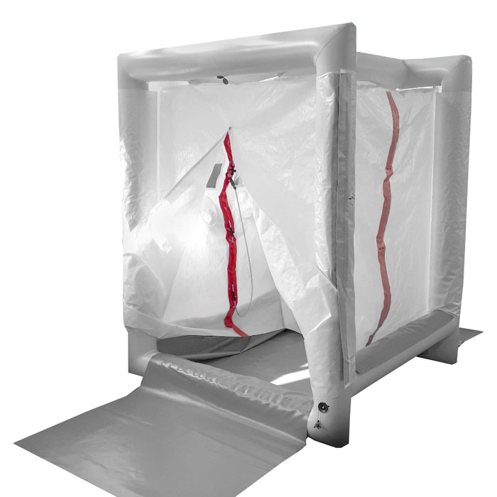 The inflatable PVC cabin is designed for cleaning, disinfecting and decontaminating protective clothing contaminated with chemical substances.