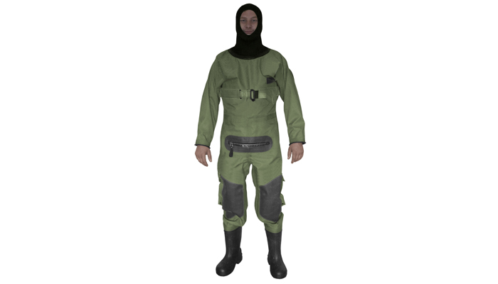 Dry suit intended to be used in rescue operations and while executing special tasks on or in water. The dry suit protects the body against getting wet and hypothermia. It provides buoyancy in the water, enabling wearers to float on the surface of water.