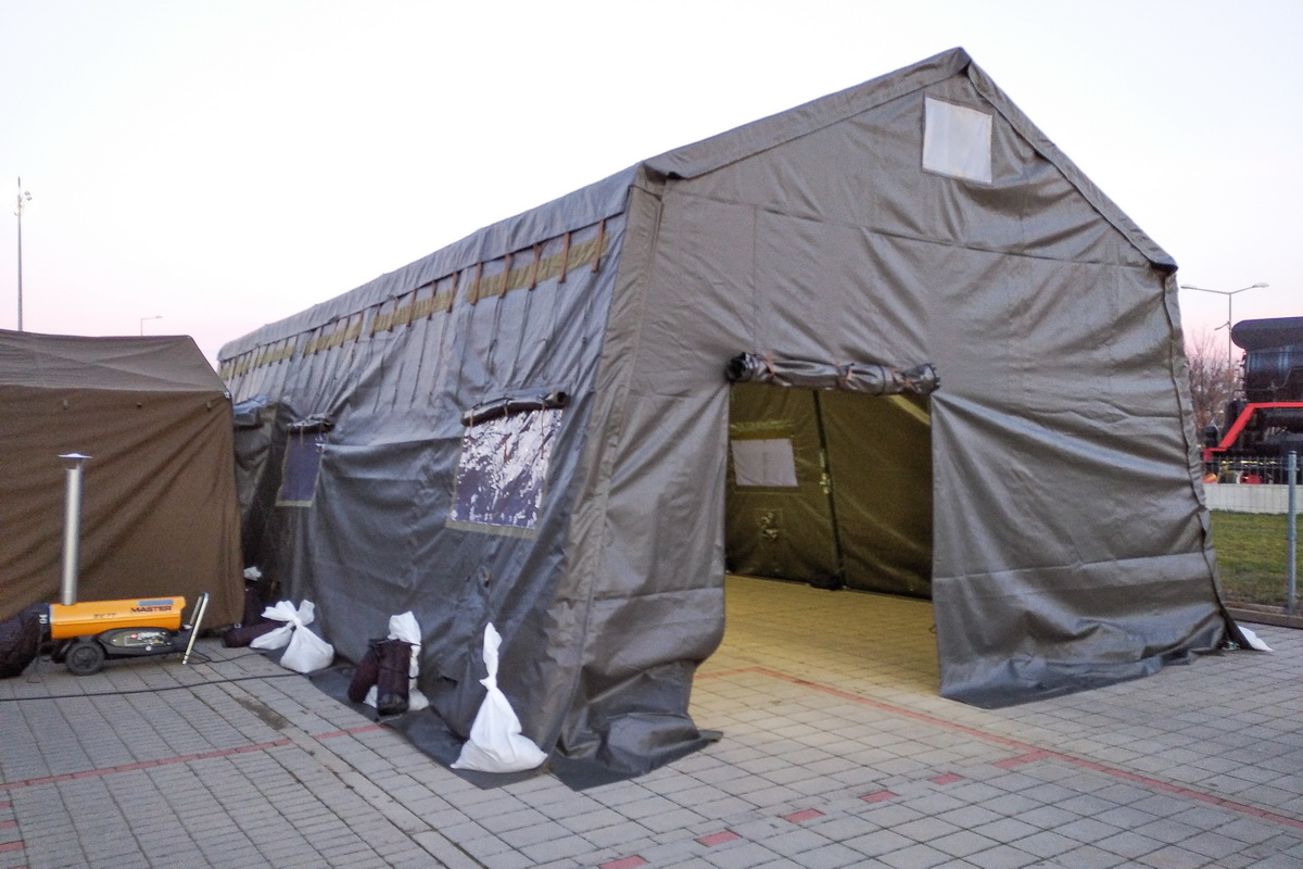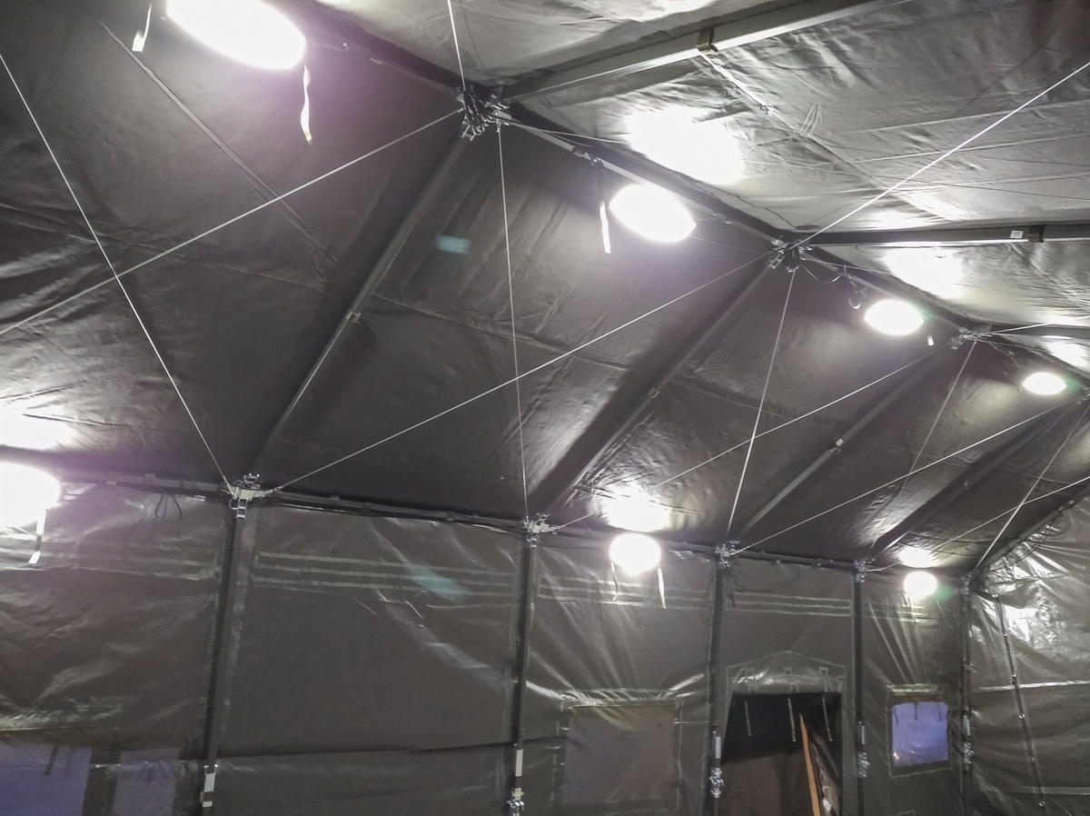 conditions. It can function as a sleeping tent, hospital (medical care unit), Command Center, field warehouse,