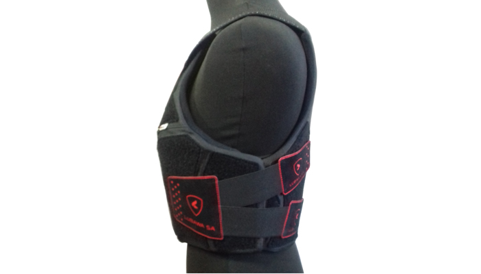 kamizelka posiada możliwość regulacji za pomocą nisko profilowych, naramiennych oraz bocznych zapięć rzepowych, które gwarantują pewne mocowanie oraz nie powodują uszkadzania odzieży wierzchniej