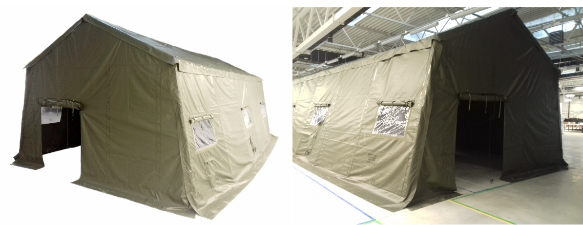 Dwa wejścia w ścianach frontowych, umieszczonych po jednym na ścianie ( o wymiarach ok. 200 x 170 cm), zamykane na zamki błyskawiczne. Wejścia są rolowane i mocowane za pomocą taśm z klamrami zatrzaskowymi;